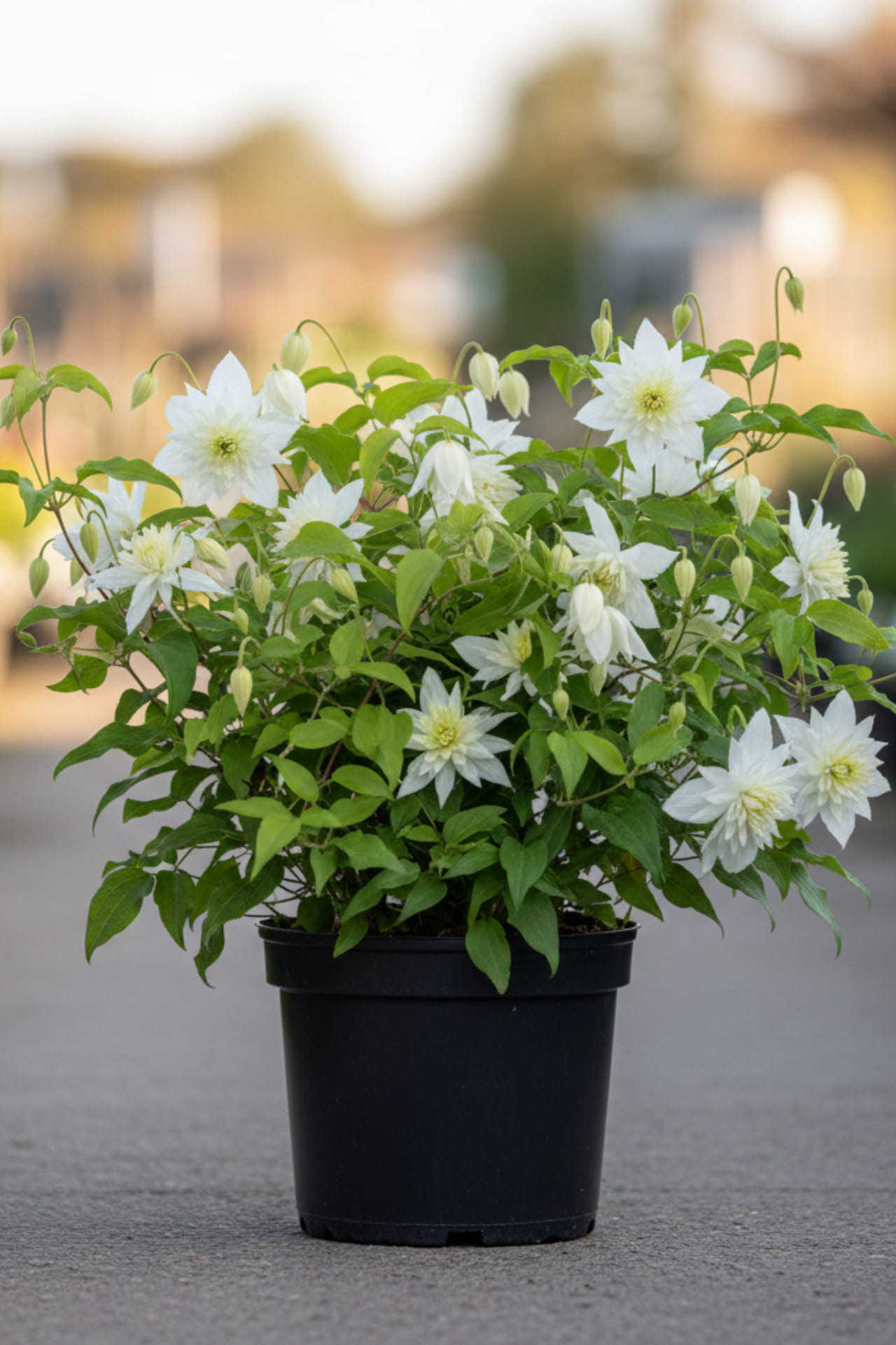 Красивые цветки: белые, махровые со светло-жёлтыми тычинками, открытые колокольчиковидные, диам. 6-8 см, слегка свешивающиеся. Обильно цветёт в IV-V на прошлогодних побегах, но затем продолжает цветение до конца лета, на побегах этого года. С июня по сентябрь украшены декоративными пушистыми светлыми соплодиями. Не нуждается в обрезке. Растёт на средних, но пропускаемых почвах. Здоровый и нетребовательный. Выносит полутень. Идеально подходит для посадки у ограждений, камней, старых пней, кустарников или хвойников. Может использоваться как почвопокровное растение.
