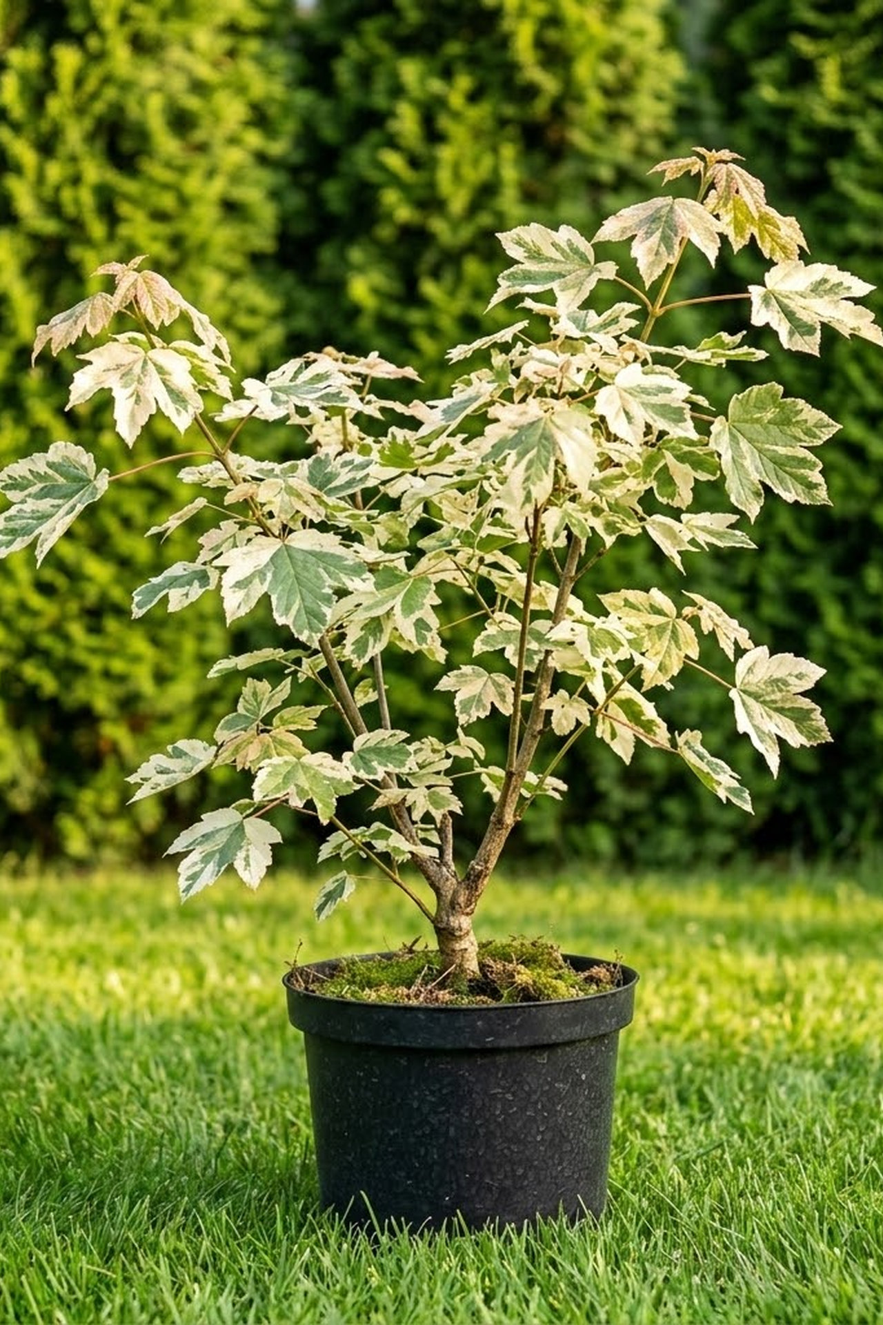 - Листья супротивные, 5 - 7 лопастные, грубые, молодые желтовато - или медно - розовые, позднее пестрые, с неравномерными пятнами разной окраски от светло - зеленой до кремово - белой, осенью листья краснеют