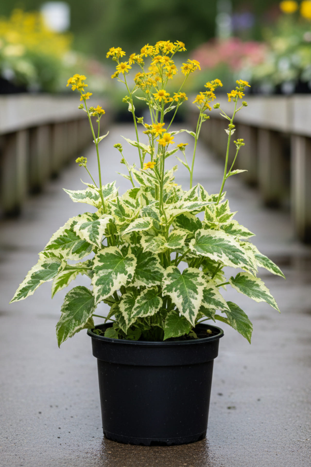 - Цветки жёлтые, ромашковидные