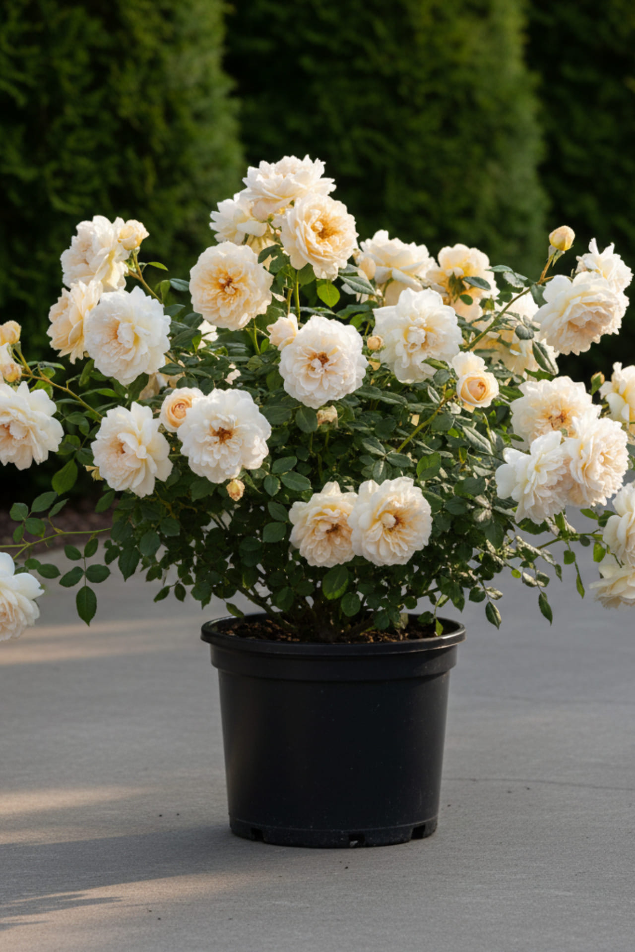 - крупные, розетковидные цветки, в начале цветения слегка чашевидные, позже лепестки отгибаются вниз. Цвет нежно-абрикосовый, бледнеющий до кремового к краям.Цветет очень обильно, крупными кистями.Приятно пахнет чайной розой