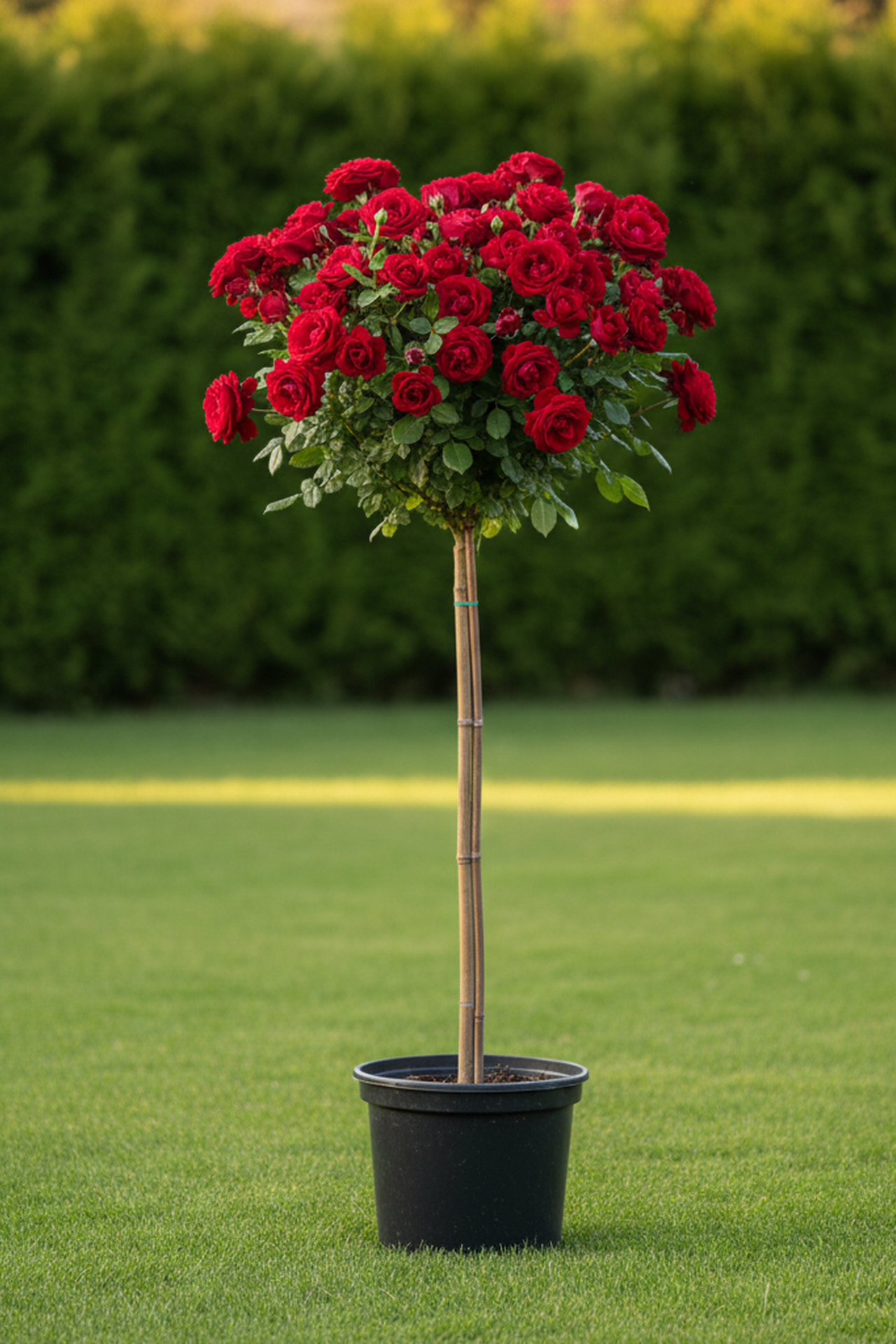 Штамбовые розы - это в прямом смысле слова рукотворная группа. Практически лю­бую розу можно привить на штамб. «Розовые деревца» очень эффектны и приоб­ретают все больше поклонников. Чтобы получить такое деревце, чайно-гибридные, розы флорибунда или плетистые розы привива­ют окулировкой на стволик шиповника на высоте 1-1,7 м.