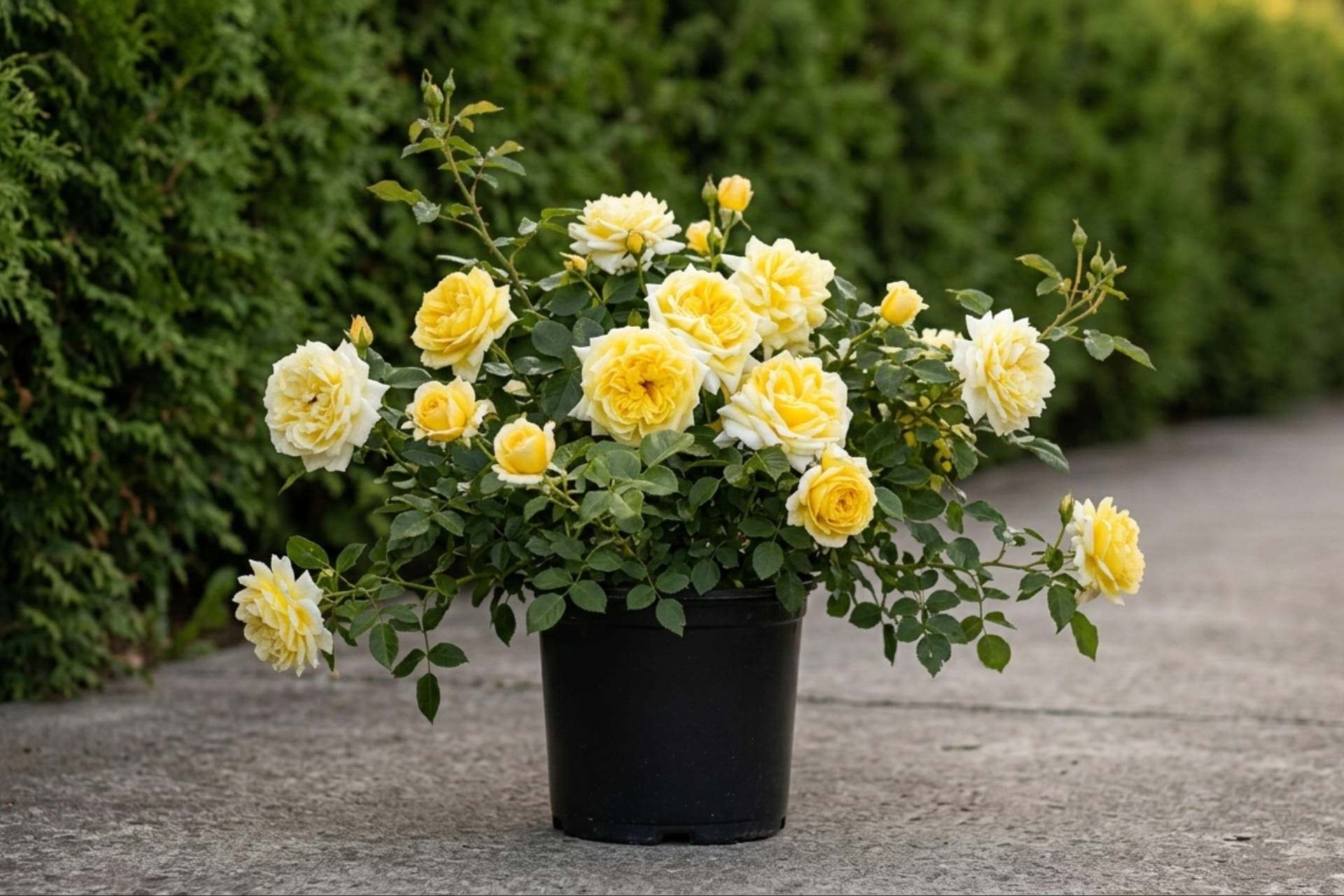 - Нежно-желтые цветы, выгорают до бело-сливочных. Размер цветка 9-10см