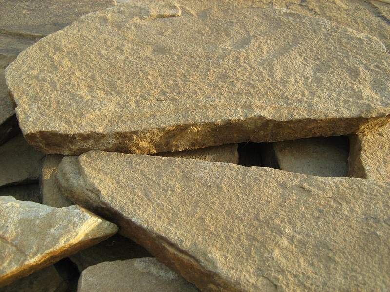 - Камень ровный, плоский, со стеклянным сколом, размер плит средний от 20-30 см.